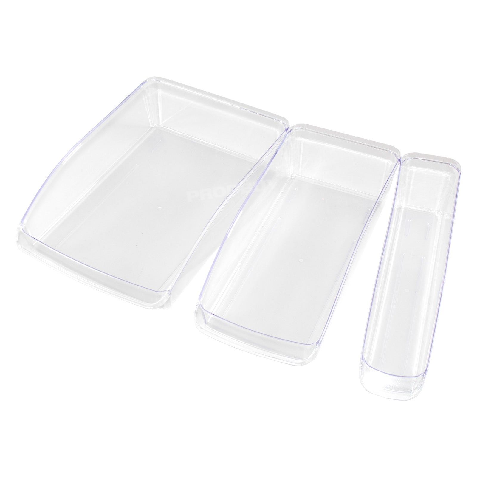 3 Piece Clear Plastic Fridge Organiser Tray Set