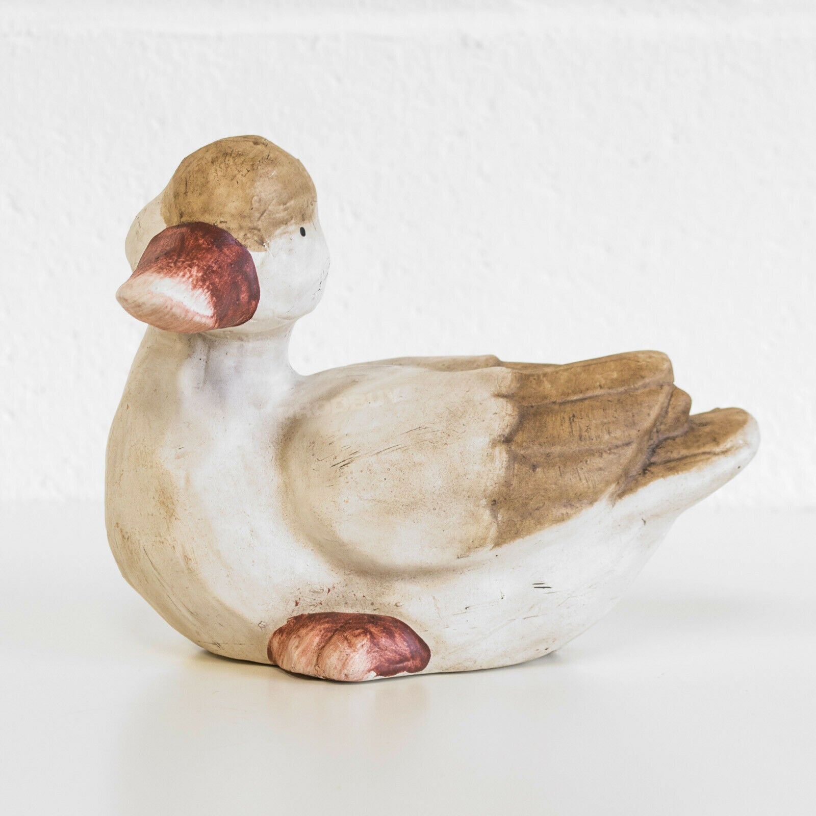 Cute Duck Ornament Brown & White Ceramic 20cm