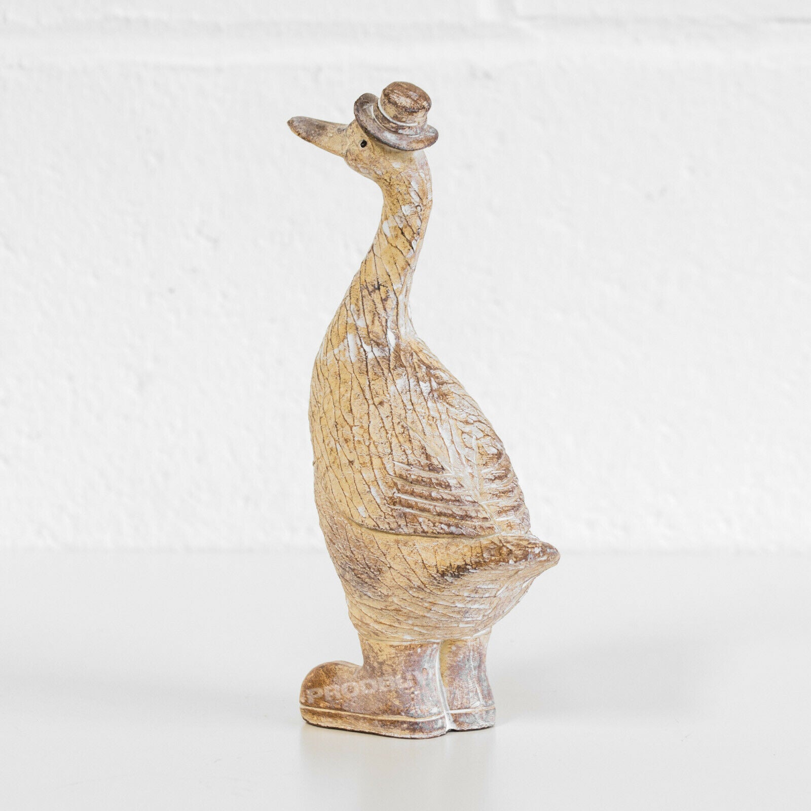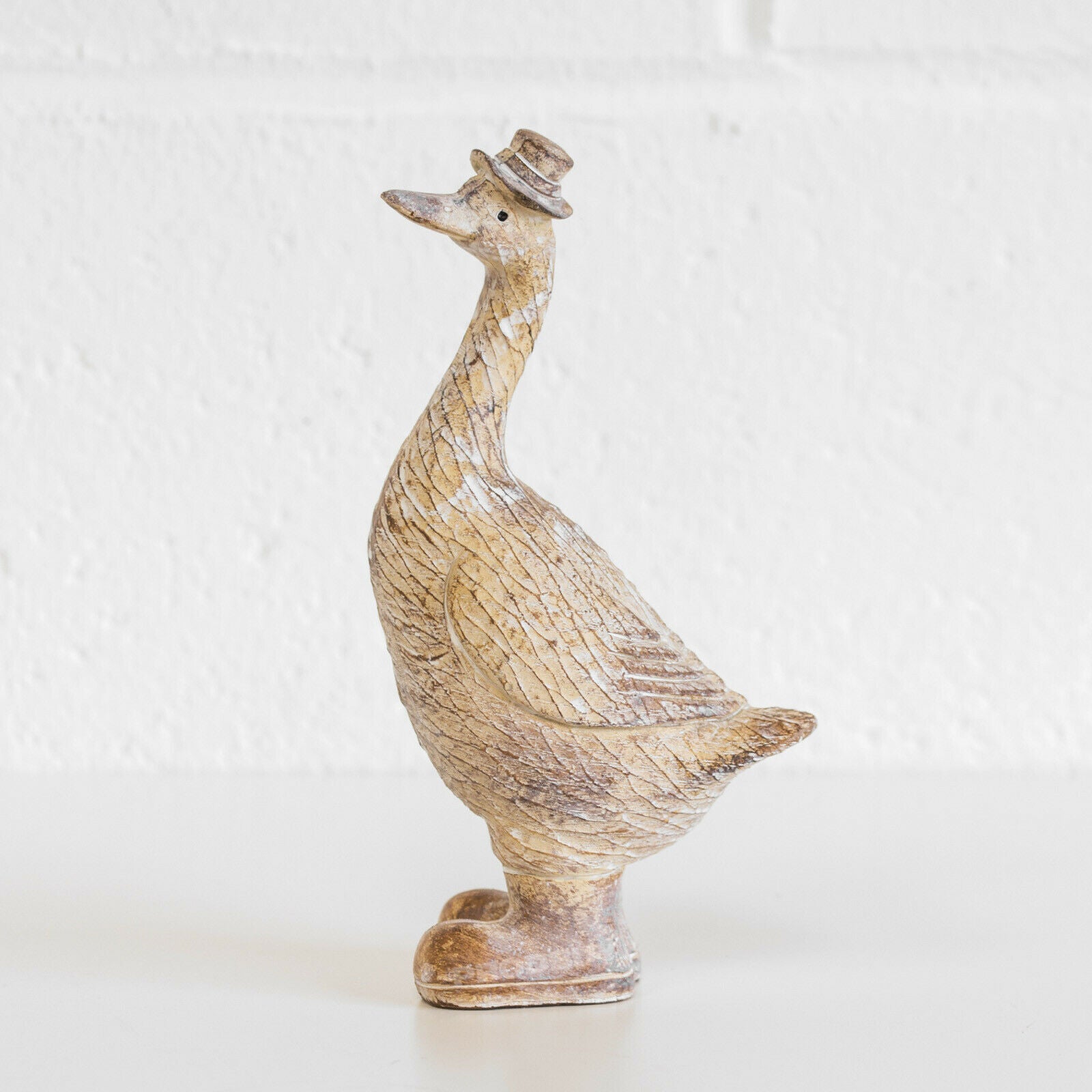 Attractive duck with boots and hat decorative ornament featuring strong resin material with brown and white carved colour finish. It is suitable for freestanding and is sure to look great around the home.