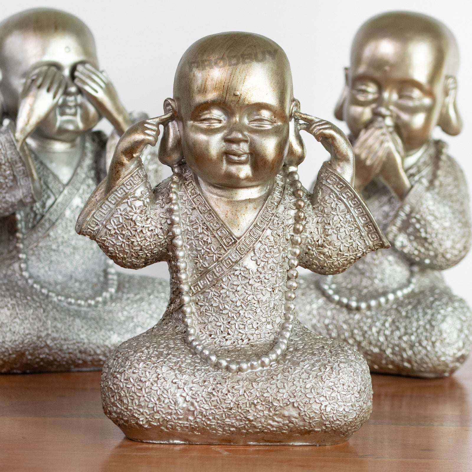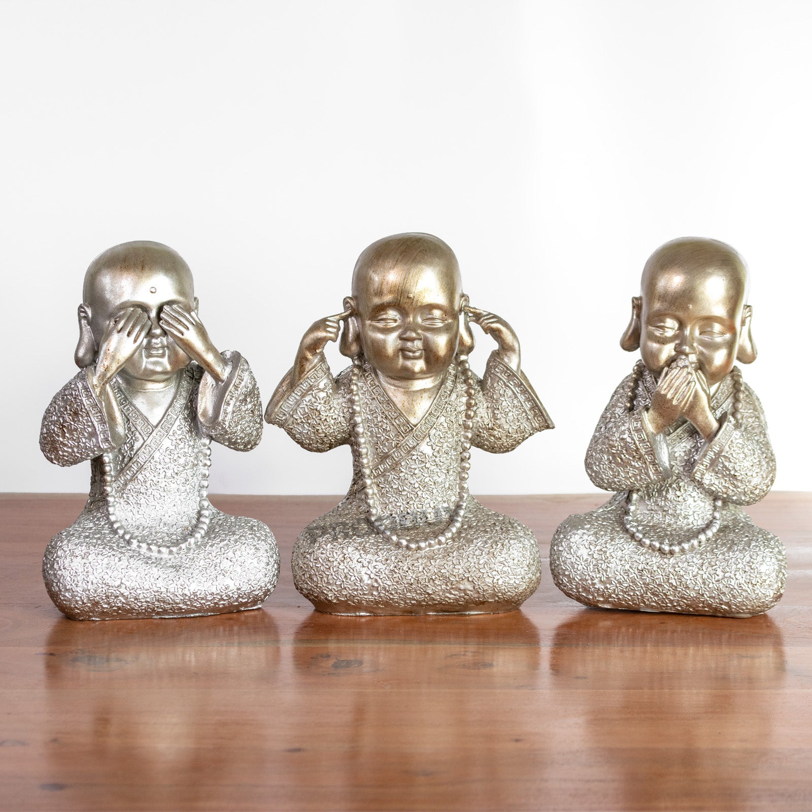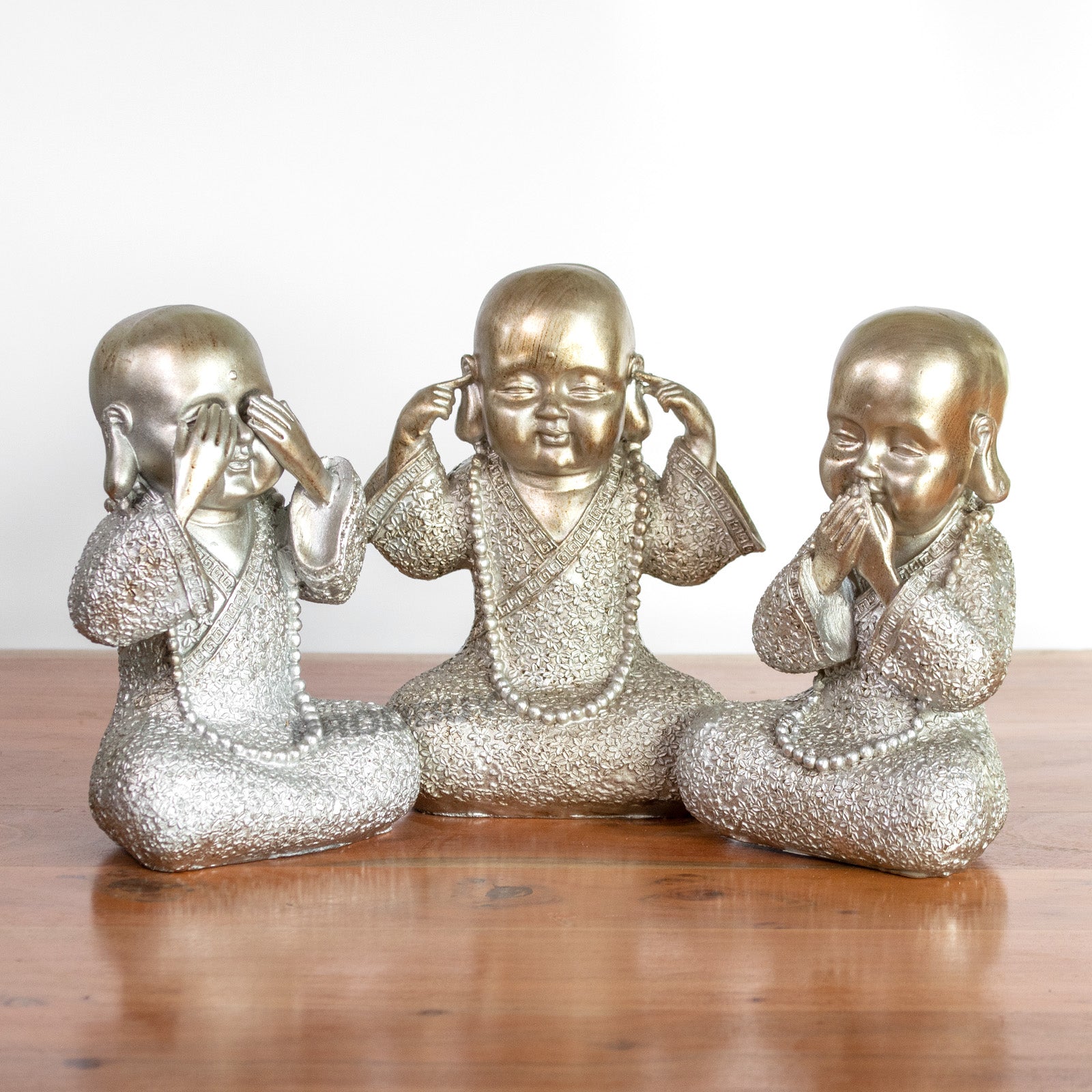 Medium Size Resin See Speak and Hear No Evil 3 Wise Buddha Ornaments
