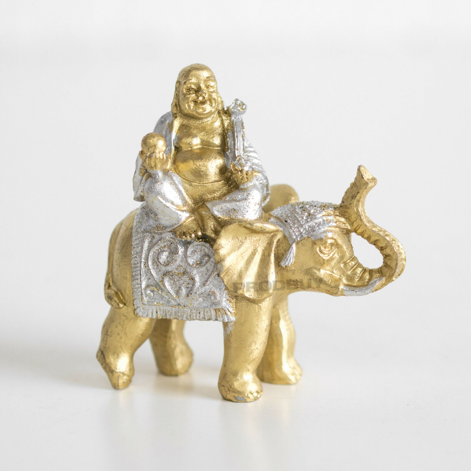 Mini 8cm Gold & Silver Buddha Exotic Elephant Ornament