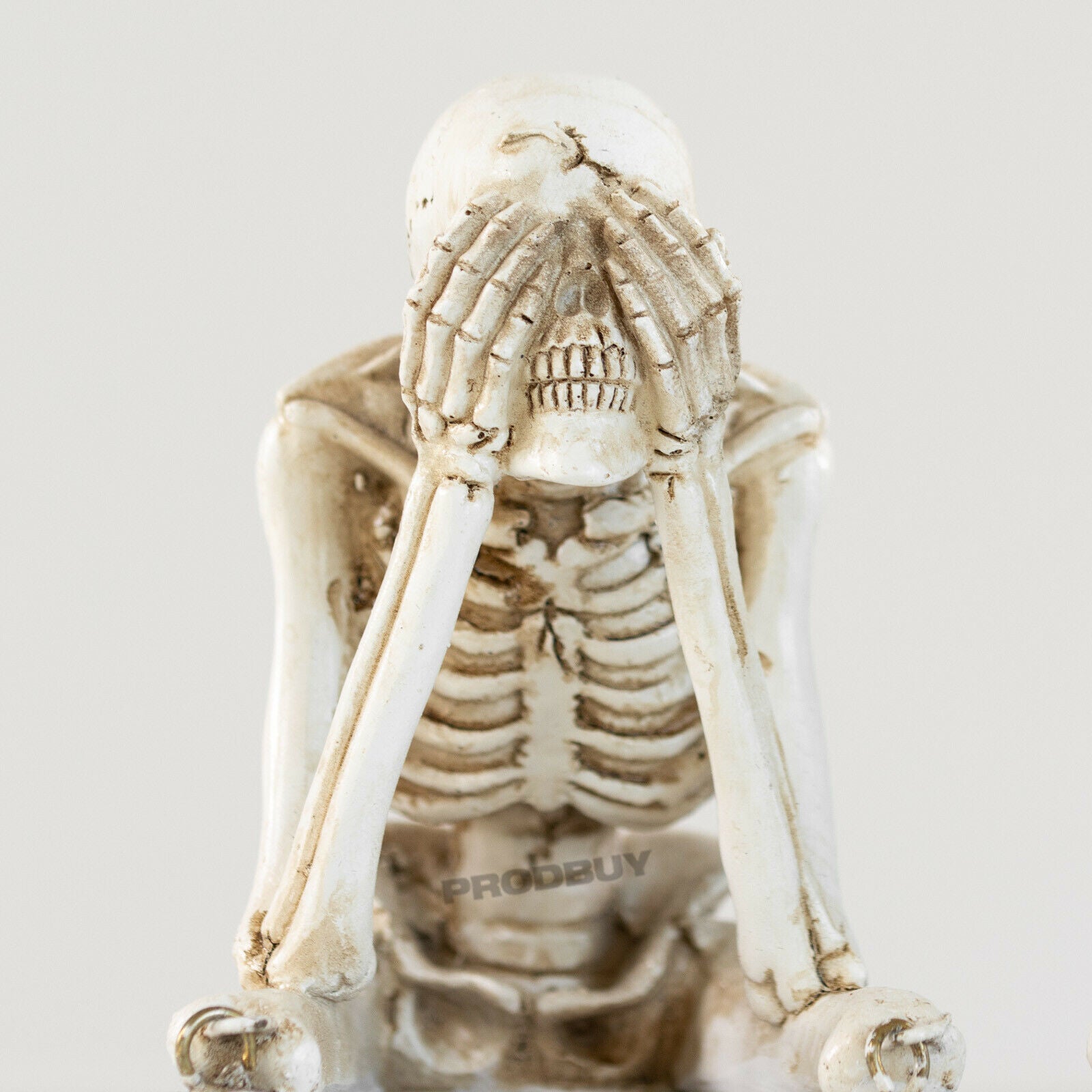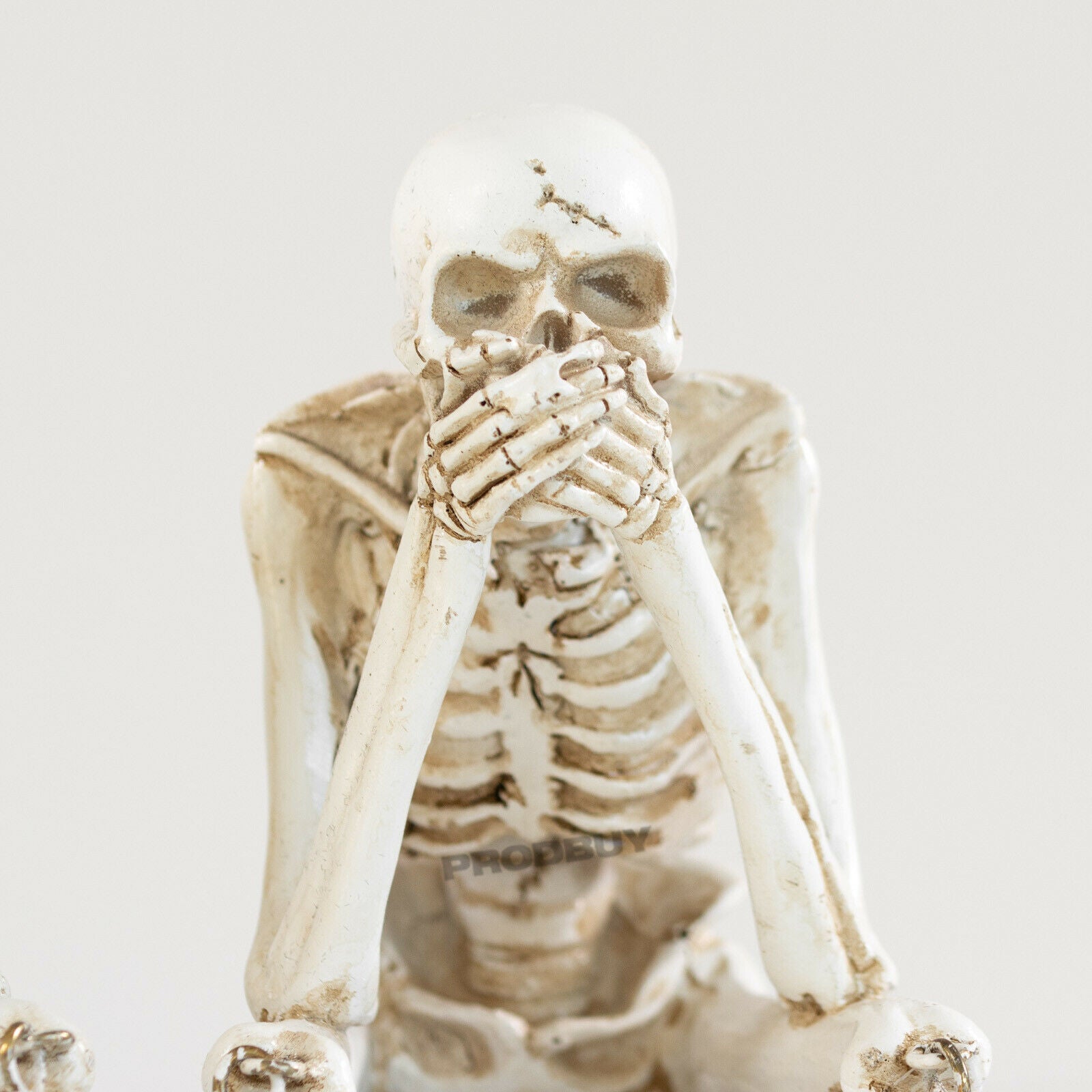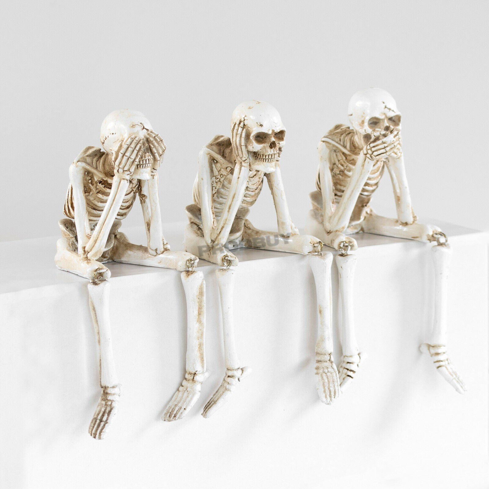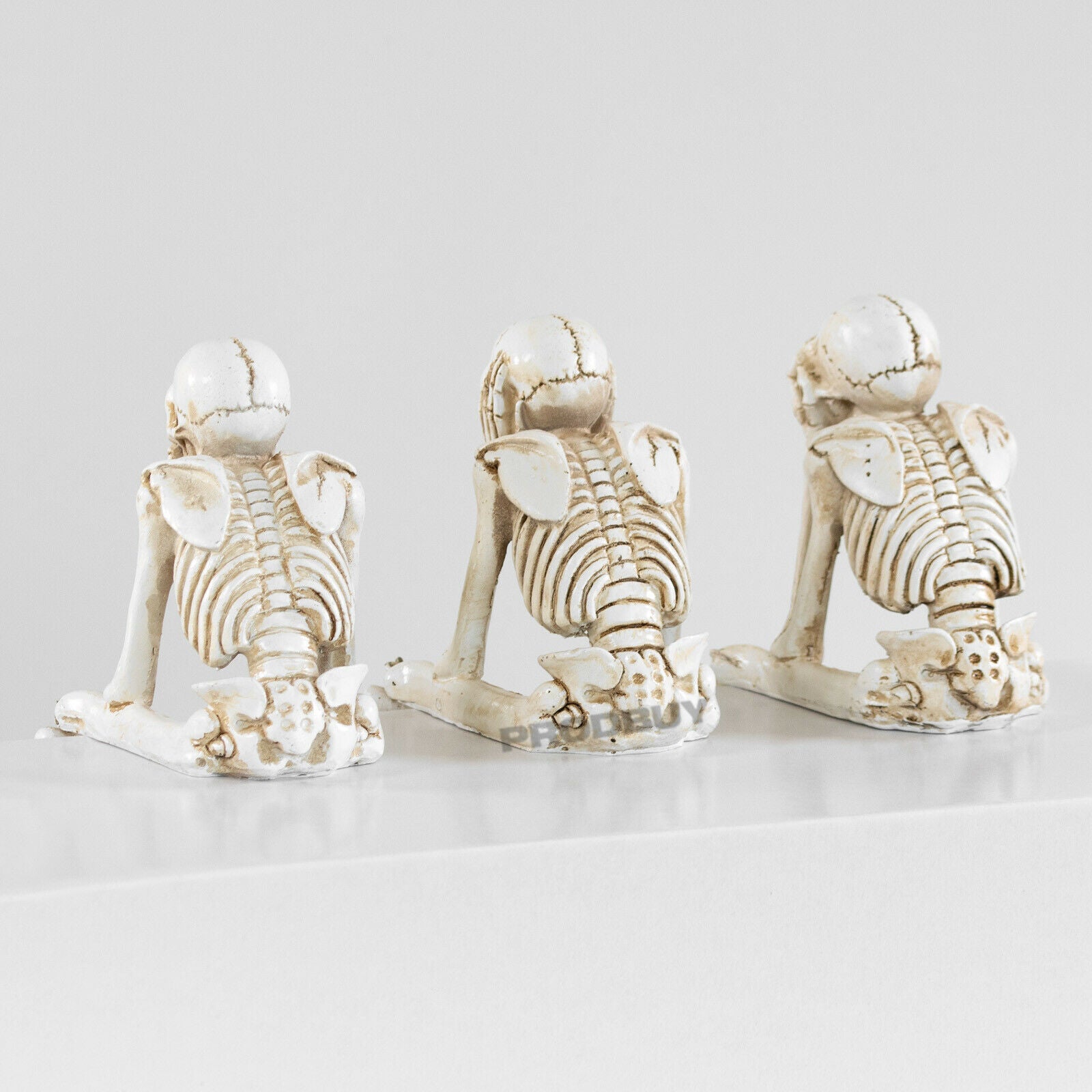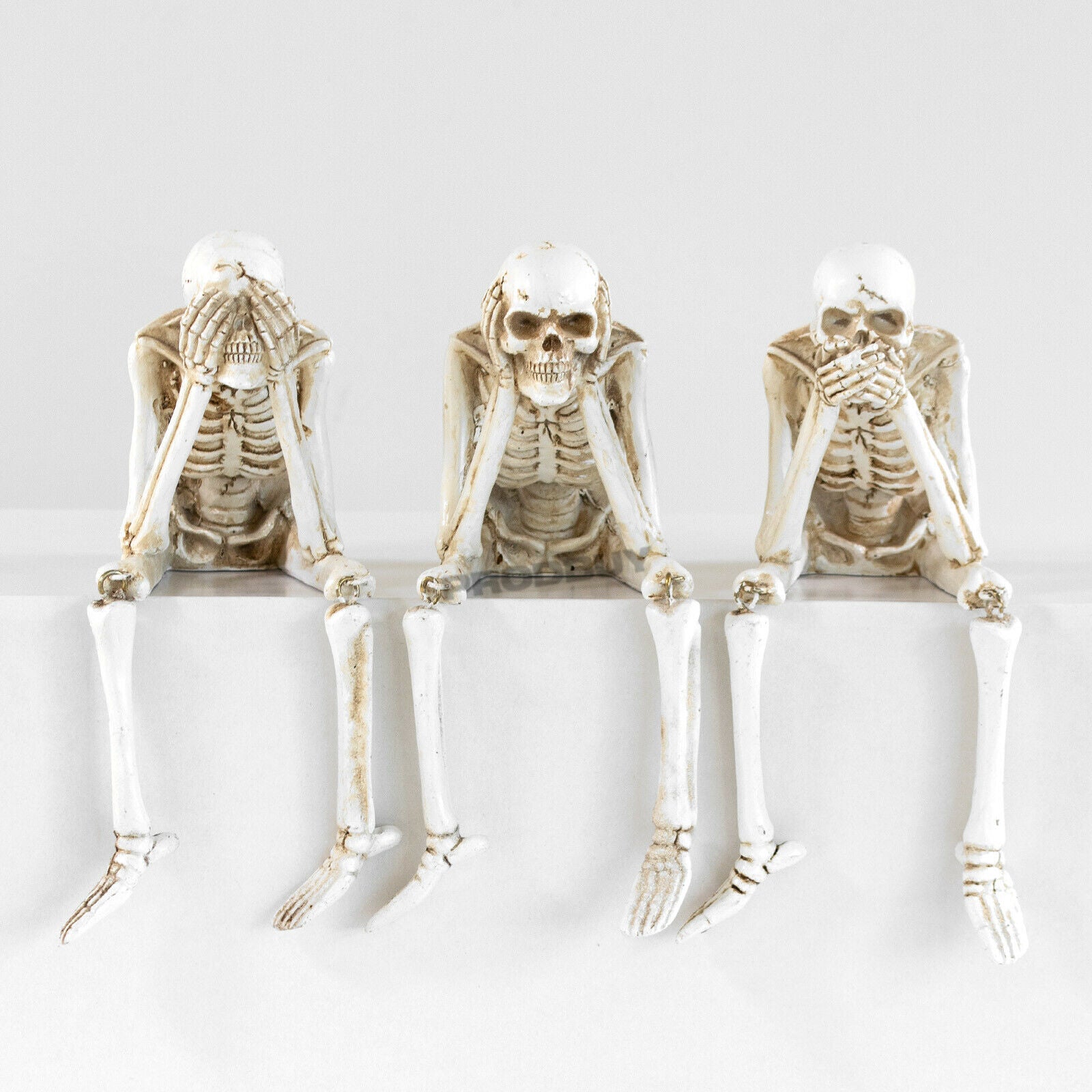 Set of 3 Skeleton Shelf Sitting Ornaments See Speak Hear No Evil Gothic Table Sitters