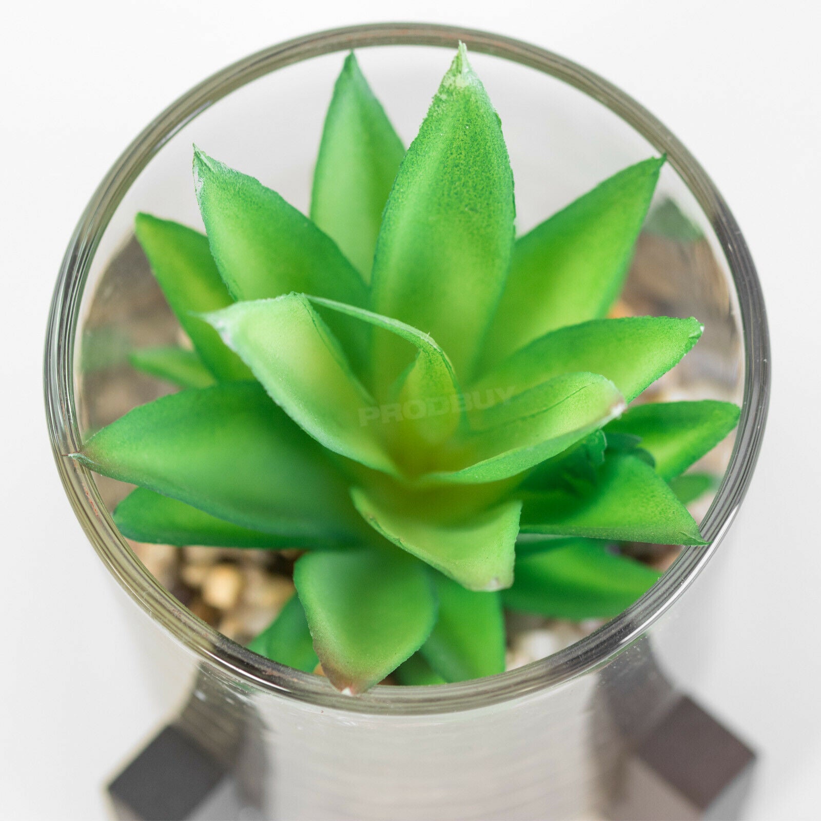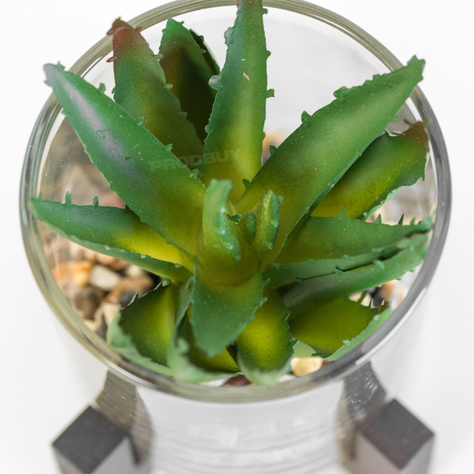 Small Artificial Cactus Succulent In Stand & Glass Pot