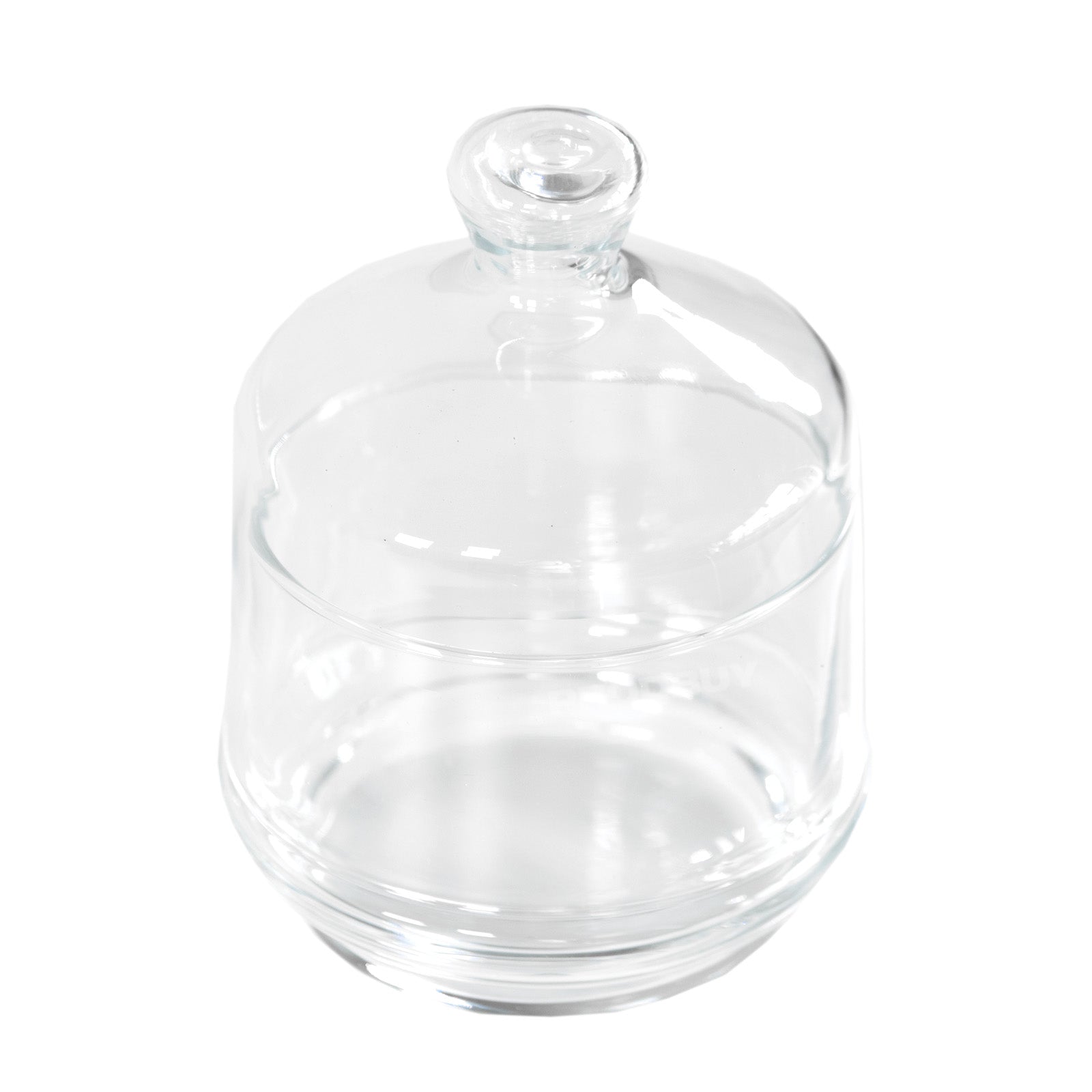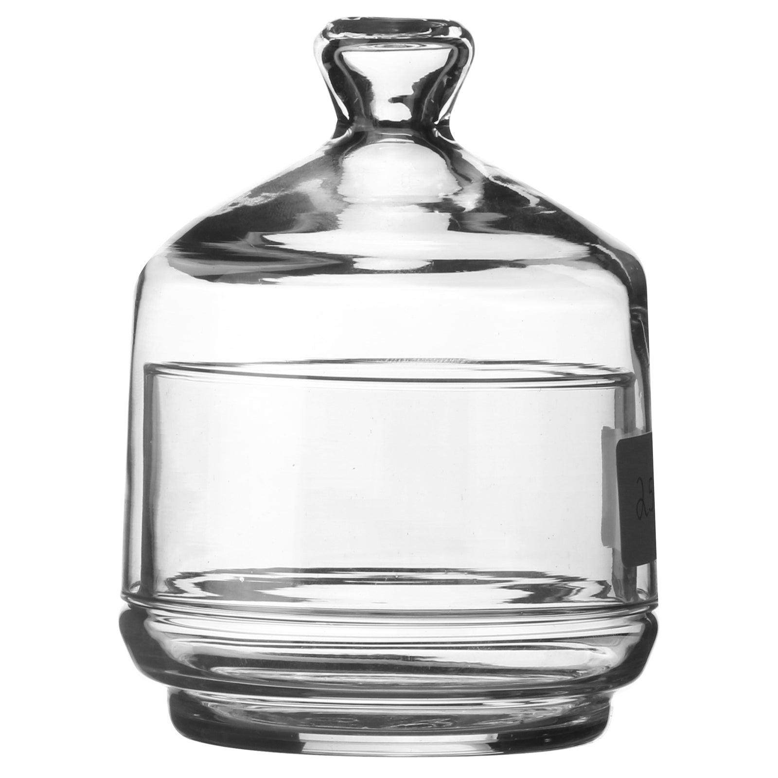 Small single compartment glass storage jar suitable for decorative storage around the home. Includes a single jar with a lid that features a moulded handle. Manufactured in Turkey the transparent glass makes identifying the contents easy. It has a measured capacity of 200ml.